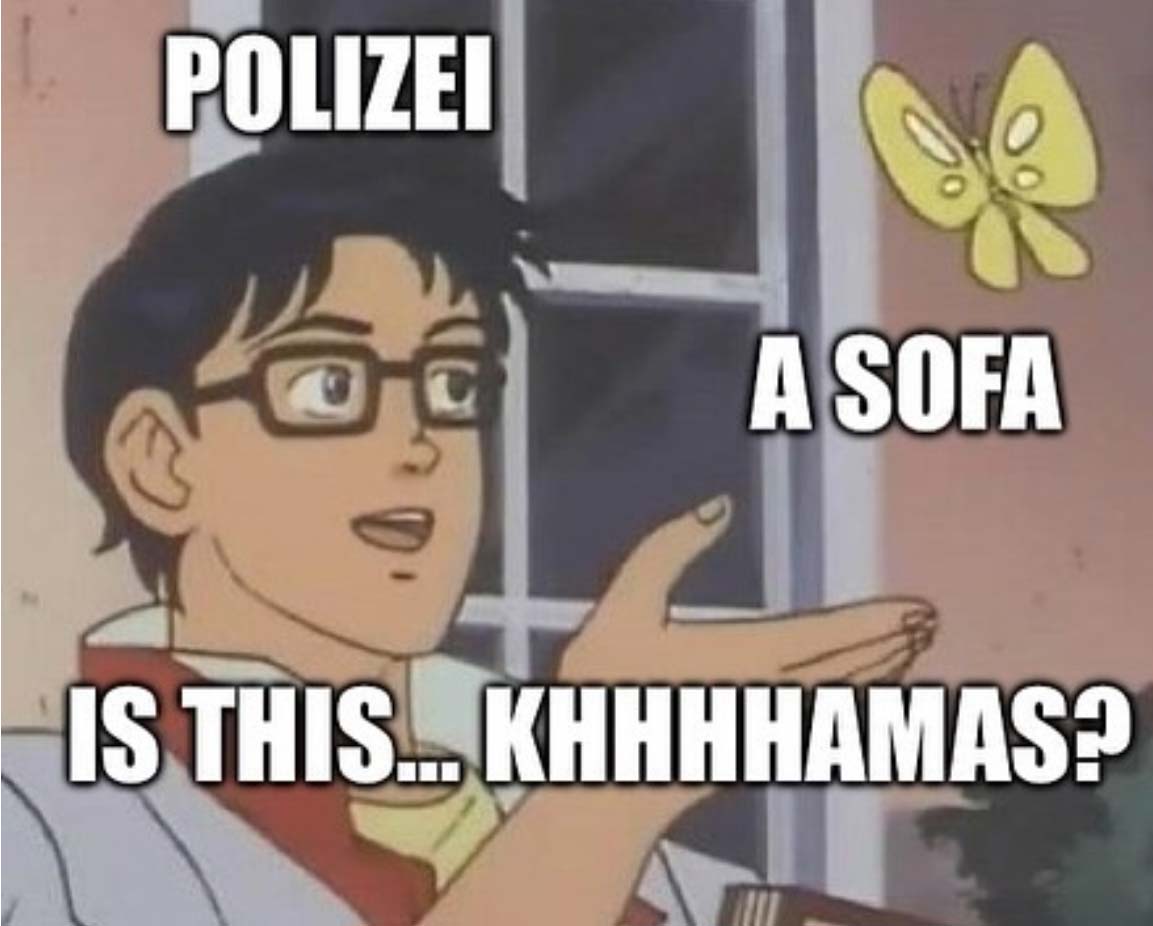 لنعد إلى مثال اعتقال الكنبة. قد يكون الانطباع الأوّلي فكاهيّاً لهذه الحادثة إذا ما أُخرجت من سياق التضامن الفلسطيني في ألمانيا. إنّ صورة أفراد الشرطة المدجّجين بالسلاح والمتوشّحين بالسواد وهم يعتقلون كنبة بسبب «تضامنها»، تتخلّلها سوريالية «طرية» خاصّة إذا ما قوبلت بتعليقات الصفحة التي يُسمع «صوت» الكنبة فيها. «أنا مجرد كنبة» تُعلن بايو الصفحة، كنبة لها صوت تضامن مع فلسطين هو أقوى بكثير من الحلفاء الصامتين في برلين. إلّا أن هذا الاعتقال الغرائبي يصحبه عنف حقيقي ومادّي جداً للأفراد الآدميين المتظاهرين لفلسطين (في موقع التخييم) والذي يُعتبَر ترداداً لنوع آخر من منهجيات القمع الألماني للشعب الفلسطيني ومناصريه. إذا ما اصطبغت هذه الحالة بالفهم الواعي للكره الألماني للوجود (وخاصّة العناد) الفلسطيني، تظهر هذه الحادثة كقصّة سوريالية سوداوية يدفع فيها الجماد الثمن نفسه الذي يدفعه الإنسان. تجريم التضامن الفلسطيني يطال الأشياء غير الحيّة وهكذا يكون مستوى كره الفلسطيني. هنا، يسأل الفلسطينيون «هل هذا حقيقي أم أننا نحلم؟». هو السؤال نفسه الذي طرحه من سَكن برلين حين منعت ألمانيا حمل صور البطيخ الذي أصبح رمزاً للتضامن الفلسطيني في المسيرات وفي الأماكن العامة. أثناء سكني في منطقة نويكولن في برلين التي يتكاثف فيها وجود الشرطة لأنّ جزءاً كبيراً من سكّان حي «زونن آلي» فيها من الفلسطينيين، سمعت عن تعنيف أفراد الشرطة لأصحاب محال البقالة الذين كانوا يعرضون البطيخ على بسطاتهم في الخارج. تكمن سوريالية سوداء في فكرة أن يصبح نوع من الفاكهة «مُجرماً» مثله مثل أثاث البيت.