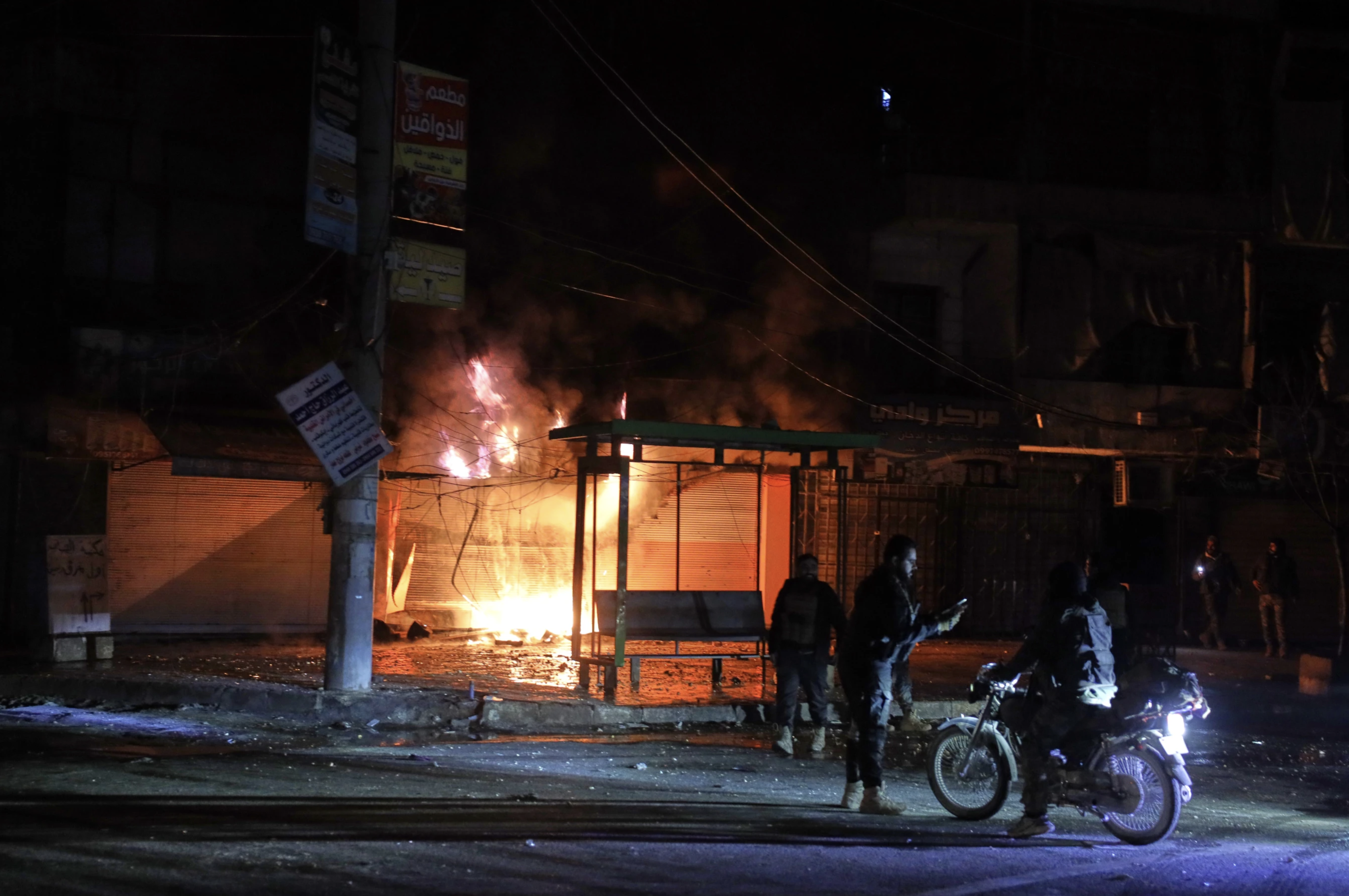 انتشار لعناصر من القوات الحكومية السورية في حيّ الأشرفية في مدينة حلب بعد اشتباكات مع مقاتلين أكراد، 8 كانون الثاني 2026. (عمر البم / وكالة أسوشيتد برس)