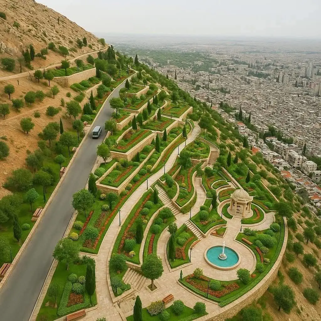 هذه النقطة تستحقّ التوقّف عندها، لأنّ جبل قاسيون، الشاهق والمهيب، والمطلّ منذ آلاف السنين على مدينة دمشق وغوطتها وبساتينها، كان منذ الأزل أجردَ ترابيّ اللون، يطلّ على المشهد الدمشقي ويتداخل معه بانسياب، كما تطلّ عليه من الأسفل أسطح المدنية ونوافذها وساحاتها. فهو بلونه الترابي وشكله الأجرد، كان حاضراً داخل المدينة ويشكل جزءاً لا يتجزأ من مشهدها البصري على مدى آلاف السنين. وفجأةً قرّر حافظ الأسد، ربما في حنين لجبال اللاذقية الخضراء حيث نشأ وترعرع، أن يجعل من جبل قاسيون جبلاً أخضر مشجّراً بالأشجار الحرجيّة.
