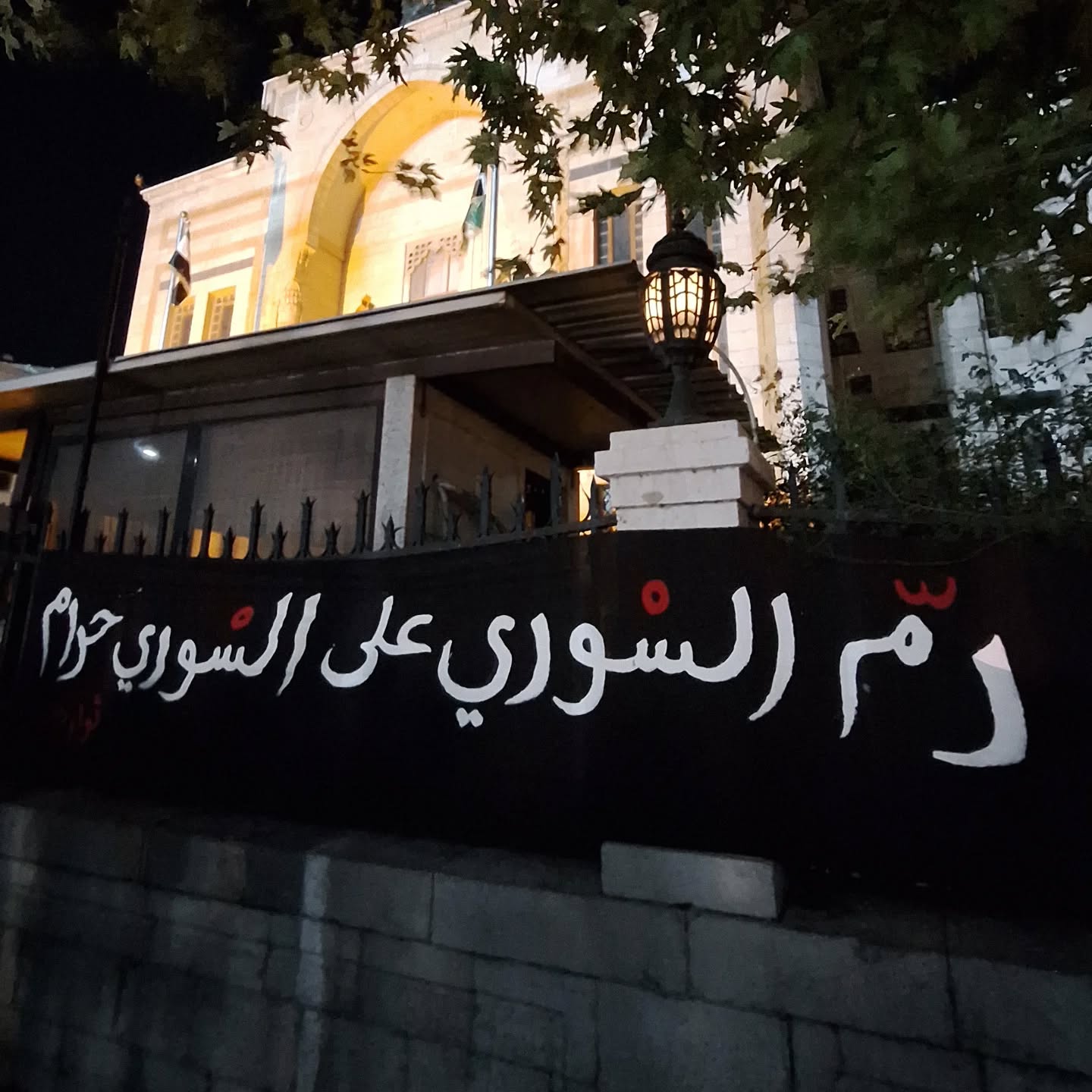 في 17 نيسان الماضي، وفي ذروة الهجوم على السويداء، اجتمعت مجموعة من الناشطين والناشطات في ذات المكان أمام البرلمان السوري المغلق واستعادوا ما فعله رفاقهم في 2012 و2014 وحملوا وعلقوا لافتات كتب عليها: «دم السوري على السوري حرام». لم تمضِ ساعات قليلة حتى هجمت مجموعة من الشبيحة الجدد على المعتصمين وأزالت لافتاتهم وتعرضت بالضرب والشتائم المقززة للناشطة والحقوقية والمعتقلة السابقة زينة شهلا، وتم كسر الاعتصام. طبعاً لم ولن يحاسب من اعتدى على زينة ورفاقها مع أن الفيديوهات المصورة استطاعت تحديد هوياتهم.