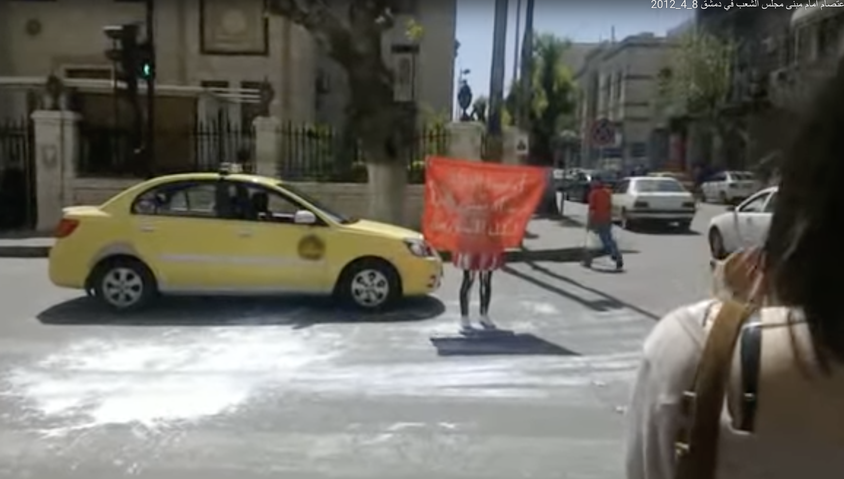 في 8 نيسان من العام 2012، وفي ظل اشتداد حملة النظام الدموية ضد الثورة السورية، اجتمع عدد من الشباب والصبايا أمام مبنى البرلمان وبدأوا بالتصفيق لرفيقة لهم اسمها ريما دالي وقفت في وسط الشارع داخل بقعة من الدهان الأبيض حاملةً لافتةً كُتب عليها «أوقفوا القتل نريد أن نبني وطناً لكل السوريين»، تلكأ المارّة وخافوا ومضوا وصفق بعضهم وتجرأت بعض السيارات وأطلقت زمورها، قبل أن يأتي الأمن ويعتقلوا ريما.