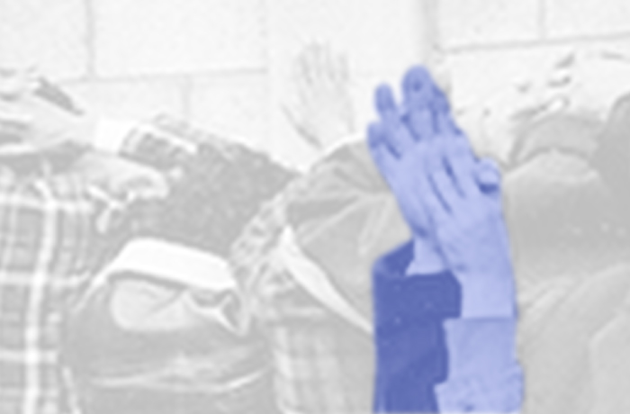 أو كيف ينقسم نصف هؤلاء بين مَن يواجهون كاميرا المصوِّر رافعين أيديهم إلى الأعلى، ومَن يديرون ظهرهم للمصوّر ساندين الحائط برأسٍ مطأطأ ويدين مكتّفتين خلف الرأس.