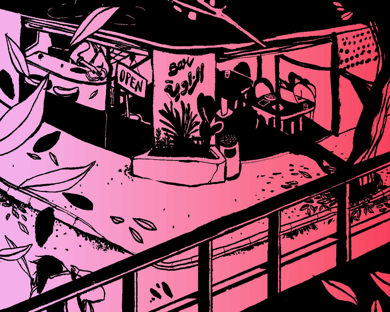 عدّى النهار من دون أن أردّ على فريد وتخيّلتُ نفسي موظّفاً في «الريش» بعد كلّ هذا العناء. أفرغتُ برّاد البيت وأعدت الحليب واللحوم والأجبان إلى «الزّاوية»، قبل أن نقلبها إلى بار. انتهى أيلول وبدأت الشمس تغيب باكراً. أوّل خريف في قهوة الزاوية. امتلأت القهوة عند المغيب باللون البرتقالي لخمس دقائق قبل أن تغيب كلّياً. مرّ الوقت بسرعة شديدة والتهيت بجنى وشعرها ونظّاراتها في الشمس، كأنّني أراها للمرة الأولى. فتحت التليفون لأصوّرها فراسلني سامي.