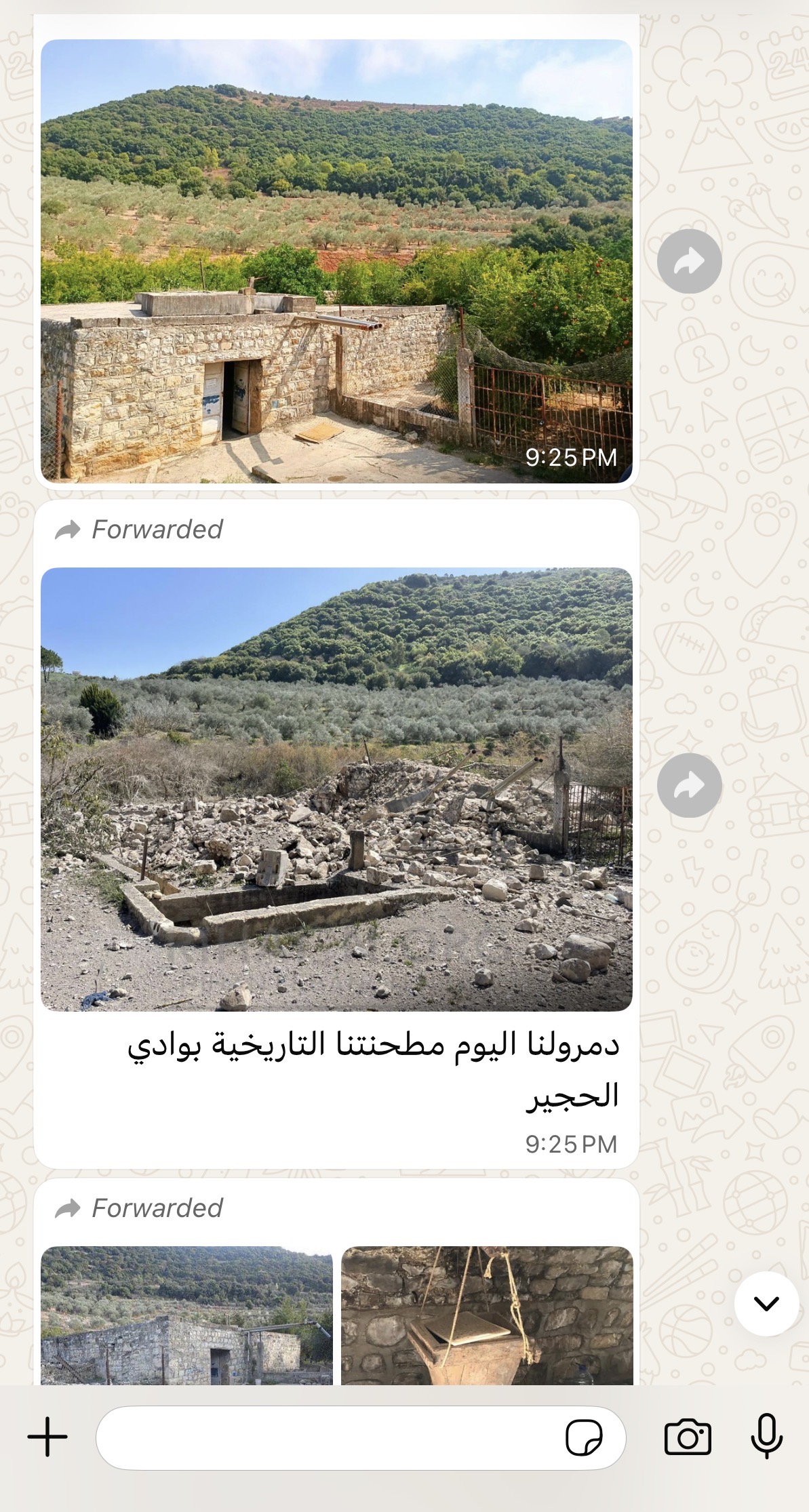 لقد دمّروا الطاحونة التاريخية في وادي الحجير. هكذا تصلنا الصور والخبر عن قرانا، وبيوتنا، وأماكننا التراثية والتاريخية.