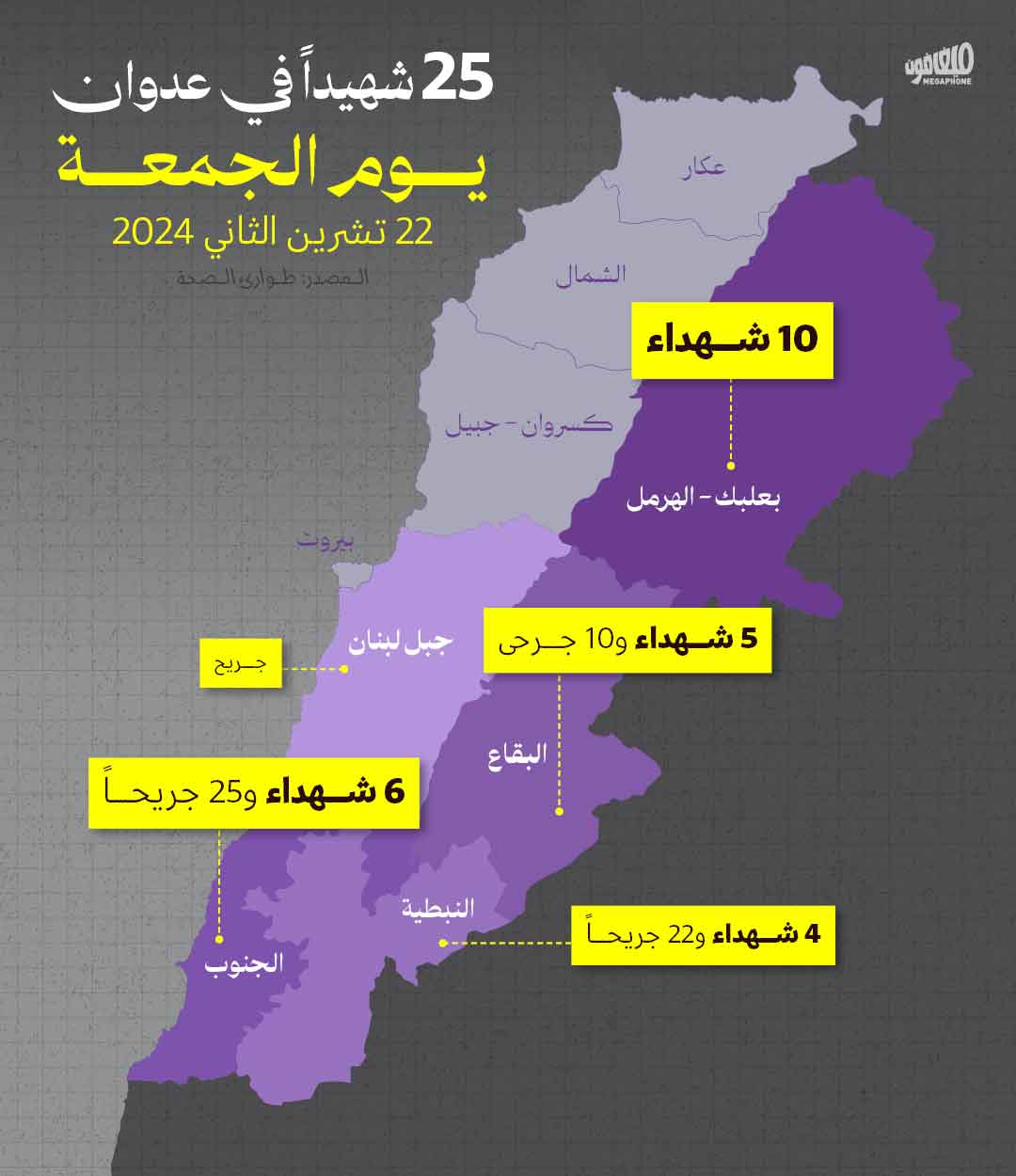 25 شهيداً في عدوان يوم الجمعة 22 تشرين الثاني 2024