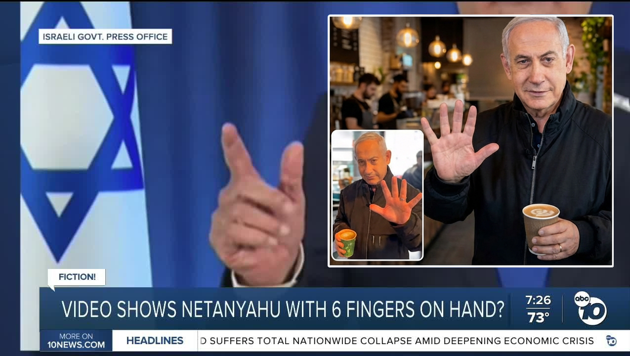 في الثاني عشر من آذار 2026، نشر مكتب الصحافة الحكومي الإسرائيلي أول مؤتمر صحفي لنتنياهو منذ اندلاع الضربات الأميركية- الإسرائيلية على إيران في الثامن والعشرين من شباط. ظهر نتنياهو عبر الفيديو، يتحدث نحو ثماني دقائق عن إسرائيل التي «تسحق النظام الإرهابي في إيران». وعند الثانية الرابعة والثلاثين ثم الرابعة والخمسين من التسجيل، بدت يداه المتحرّكتان مشوَّهتَين، شذوذٌ جلدي قرب الخنصر اليمنى فسّره المشاهدون على أنه إصبع سادس، في إشارة معروفة إلى علامات الذكاء الاصطناعي التوليدي.