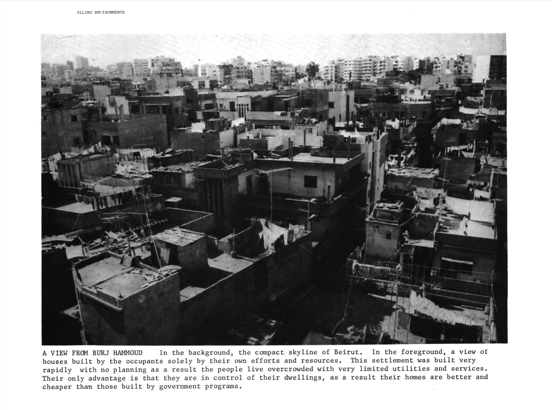 صور لمنطقة الكرنتينا (أحمد تقي، Urban dwelling environments: Beirut, Lebanon; case studies: Mkalles Housing Project، 1974).