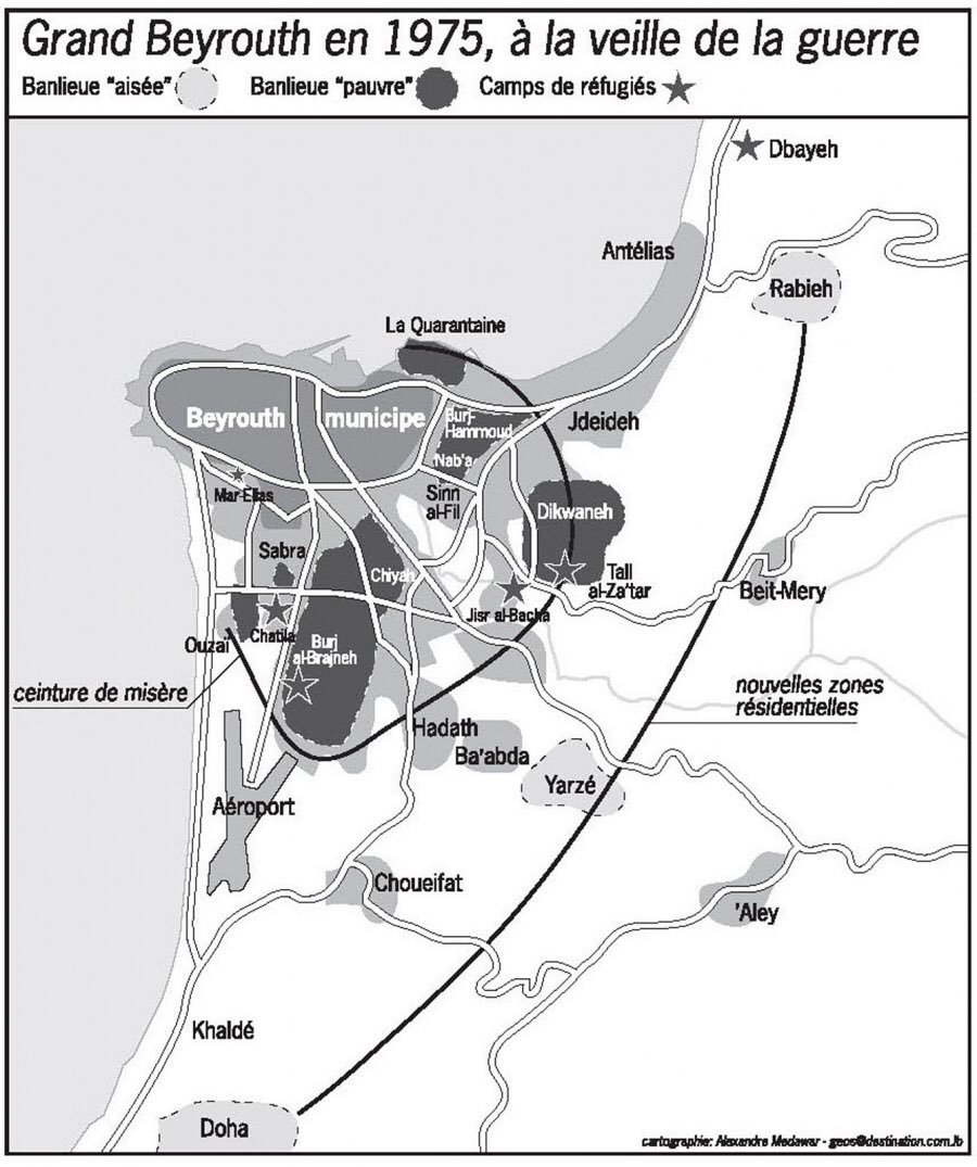 لم تكن بيروت دائماً على هذا الحال. فالمنطق الطائفي ليس جوهراً ثابتاً أو قدراً محتوماً في المدينة، بل هو منطق تمّ إنشاؤه، ونشأ معه الفهم والتصوّر الطائفيّان. هذا التقسيم الطائفي للمدينة، الذي أصبحنا نعتبره أمراً عادياً، يبلغ هذا الشهر عامه الخمسين. أضع بدايته في 19 كانون الثاني 1976، في اليوم الذي خططت فيه الميليشيات المسيحية ونفذت هجوماً منسقاً على حي الكرنتينا، أسفر عن مجزرة واسعة النطاق، فضلاً عن واحدة من أولى عمليات النزوح الجماعي بدوافع طائفية في الحرب الأهلية اللبنانية. فإذا كان 13 نيسان 1975، يوم مجزرة البوسطة الشهيرة في عين الرمانة، يمثّل التاريخ «الرسمي» لبداية الحرب، فإنّ 19 كانون الثاني يمثّل علامة فارقة أخرى ونقطة اللاعودة، عندما أصبحت الانقسامات الطائفية راسخة مادياً في المدينة وتقسيم أحيائها. وفي العودة إلى المرحلة التي سبقت هذا الانقسام، يمكن بدء مساءلة الجذور الهيكلية والمادية للطائفية.