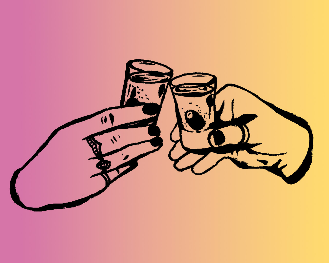 - «وطلوع»! ههه، كأنك مش شاربة بحياتك.